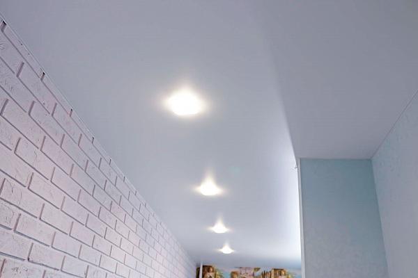 На опуск потолка может повлиять внутренняя часть цоколя лампы и размер закладной конструкции под осветительный прибор. В среднем опуск потолка при установке точечных светильников составляет 5-6 см.