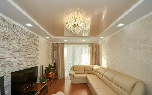 Примеры бежевых натяжных потолков с отзывами клиентов