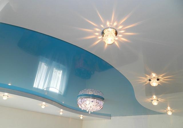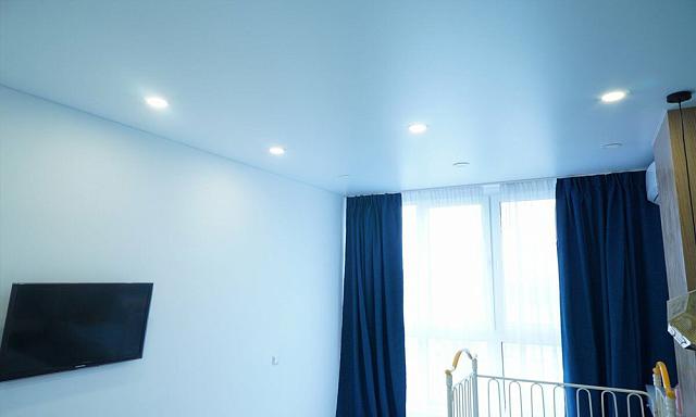 Натяжные потолки голубого цвета