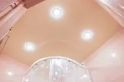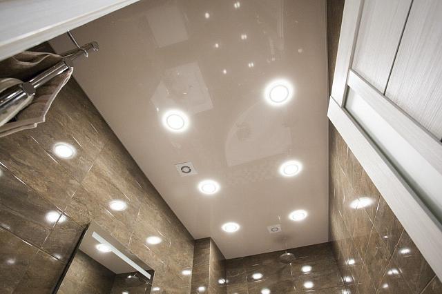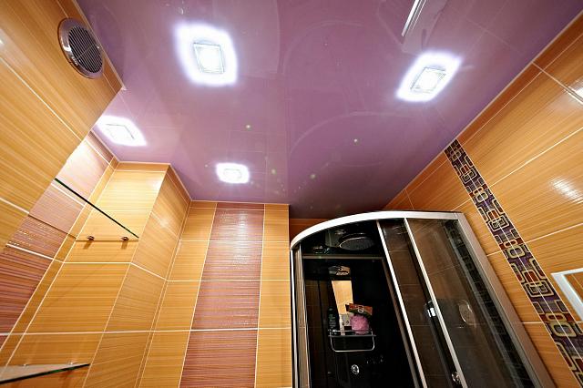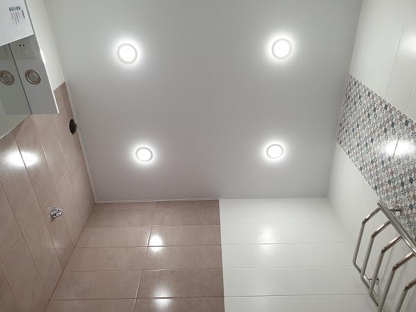 Натяжные ПВХ потолки отлично подойдут для установки в ванной комнате. Полотна обработаны специальными антигрибковыми добавками и препятствуют появлению грибка и плесени. Также натяжные потолки очень прочные, они не раз спасали квартиры от затопления. Потолки выдерживают до 100 кг/м2.