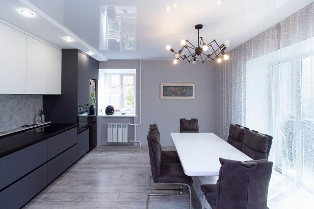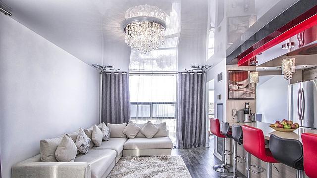 Для установки натяжного потолка в кухне, подойдёт абсолютно любая фактура. Классический матовый, изысканный сатиновый и зеркально глянцевый натяжные потоки обязательно преобразят Вашу кухню.