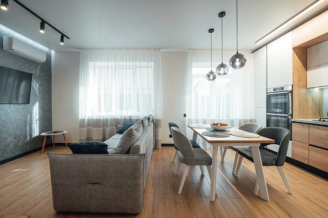Натяжные потолки линейки EcoLine обладают специальной пропиткой, которая препятствует скоплению частичек жира и копоти. Также эти полотна обладают повышенной прочность и выдерживают до 100 кг на м2. В случае затопа Вы можете не переживать за ремонт и сохранность мебели с техникой. Плюс ко всему с помощью спайки натяжных полотен Вы сможете зонировать пространство помещения.
