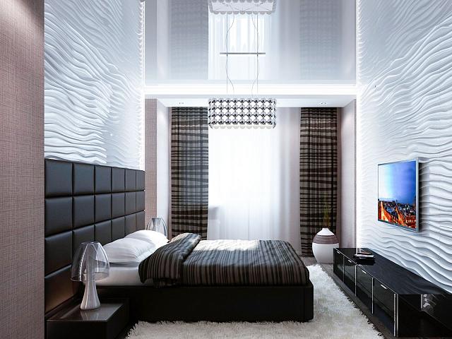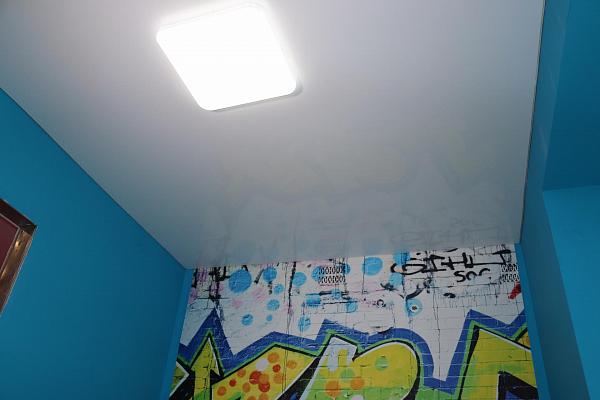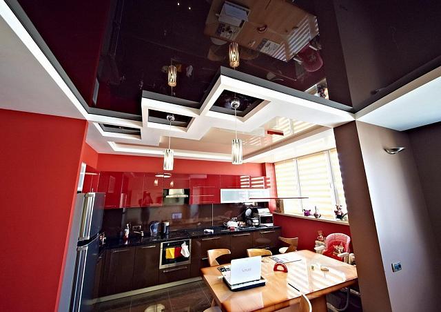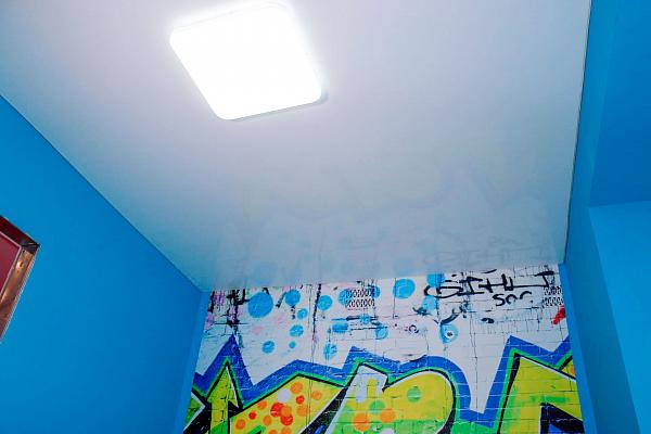 Глянцевое полотно визуально увеличивает высоту потолка, лучше отражает свет. Такие потолки часто заказывают для маленьких помещений: в ванную, в коридор, в прихожую. Темный, черный, глянец создает ощущение зеркала на потолке. Но учтите всё, что лежит на шкафах, будет отражаться в потолке. На глянцевых потолках заметна практически любая грязь.