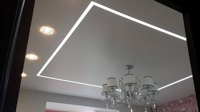 Натяжные потолки со световыми линиями — это конструкция, которая состоит из натяжного потолка и светодиодных лент, расположенных по его периметру или в определённых зонах. Светодиодные ленты могут быть разных цветов и создавать разнообразные световые эффекты, такие как мягкое свечение, переливы цветов, мерцание и другие.
