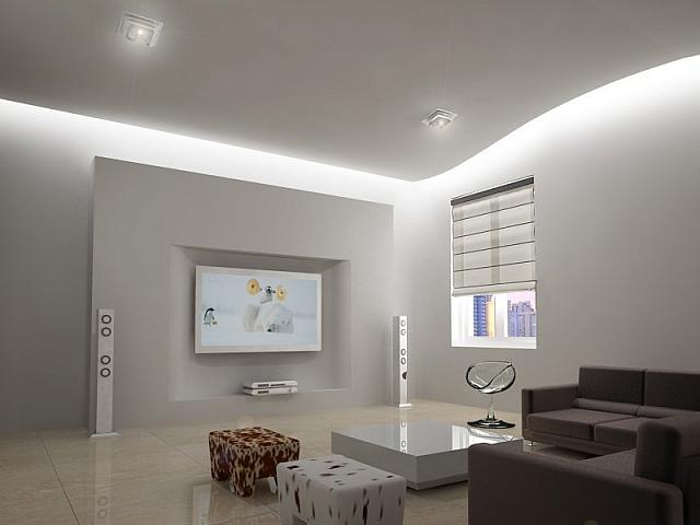 • Визуальное расширение пространства: Благодаря скрытому освещению потолок выглядит "парящим", что создает иллюзию увеличения пространства.