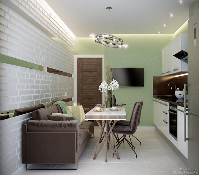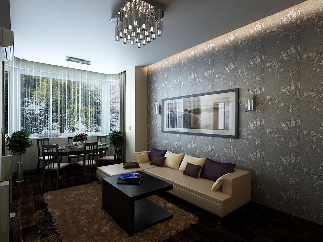 Парящий глянцевый в гостиной 14м²