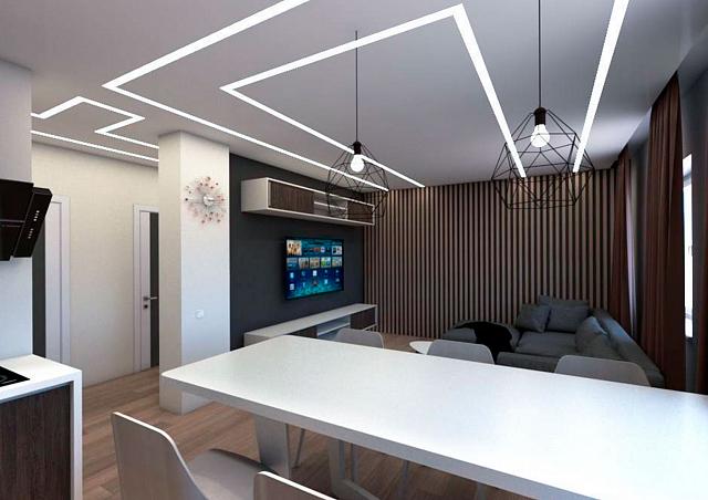 Такие потолки помогают скрыть коммуникации, выровнять базовый потолок и зонировать пространство, а также если помещение широкое , позволяет скрыть сварочный шов.