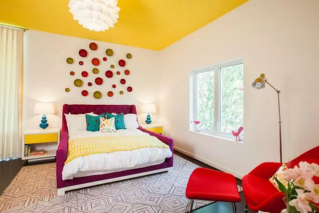 При установке точечных светильников, натяжной потолок опустится примерно на 4-6 см.