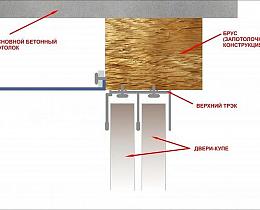 Существует два варианта установки шкафа-купе с натяжным потолком. В первом случае потолок устанавливается по всей площади помещения, на месте, где будут крепиться направляющие от шкафа устанавливают закладную конструкцию. В таком случае потолок будет и в самом шкафу. В другом случае, крепления для потолка устанавливают на закладной для шкафа, где в последствии будут крепиться направляющие. В этом случае потолок будет установлен до шкафа-купе.