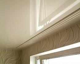 Существует два варианта крепления потолочного карниза. Это потолочный карниз или ниша под карниз. Потолочный карниз крепиться к установленной закладной под натяжным потолком. В случае ниши под карниз, потолок не доходит до окна, оставляется пространство и в это пространство крепится карниз. Выглядит это так, как будто шторы спускаются из-под потолка.